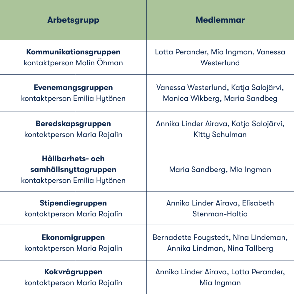 Arbetsgrupp: beredskapsgruppen, stipendiegruppen, Kokvrågruppen